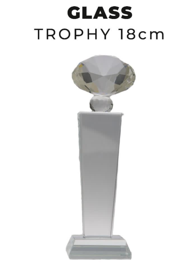 TR0273 Glass Trophy with Diamond 18cm